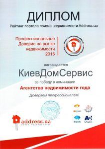 • Ріелторське агентство року в номінації «Професійна довіра на ринку нерухомості».